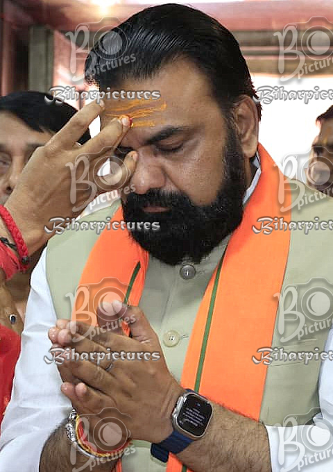 17-04-2026-Pramod Mukesh, President of the Baba Harihar Nath Temple Management Committee, greets and honours Bihar Chief Minister Samrat Choudhary during a puja ceremony at Baba Harihar Nath Temple, where the Chief Minister, accompanied by his family, offered prayers for the peace, prosperity, and well-being of the state.