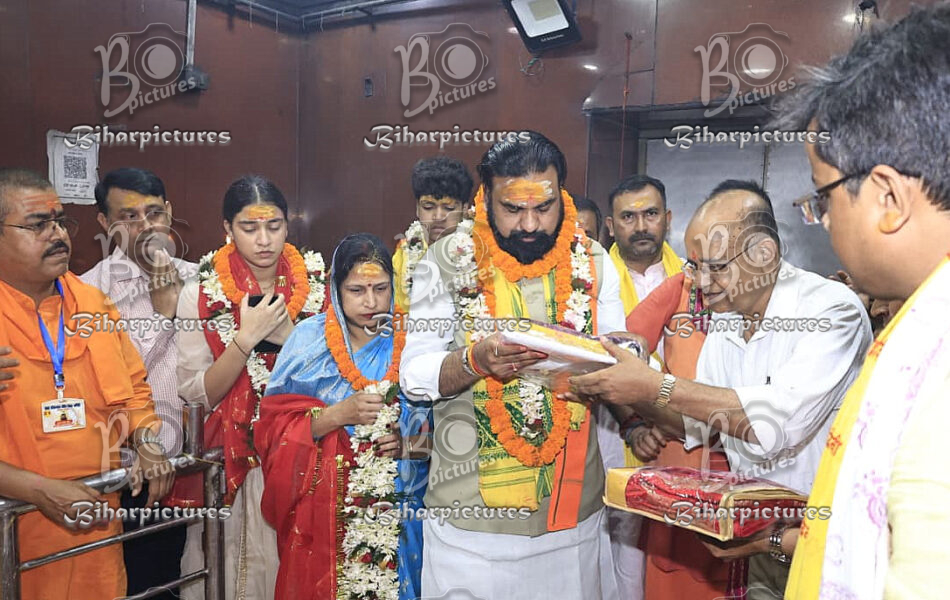 17-04-2026-Pramod Mukesh, President of the Baba Harihar Nath Temple Management Committee, greets and honours Bihar Chief Minister Samrat Choudhary during a puja ceremony at Baba Harihar Nath Temple, where the Chief Minister, accompanied by his family, offered prayers for the peace, prosperity, and well-being of the state.प्रमोद मुकेश, बाबा हरिहर नाथ मंदिर प्रबंधन समिति के अध्यक्ष, बिहार के मुख्यमंत्री सम्राट चौधरी का बाबा हरिहर नाथ मंदिर में आयोजित पूजा समारोह के दौरान स्वागत एवं सम्मान करते हुए। इस अवसर पर मुख्यमंत्री ने अपने परिवार के साथ राज्य की शांति, समृद्धि और खुशहाली के लिए प्रार्थना की।